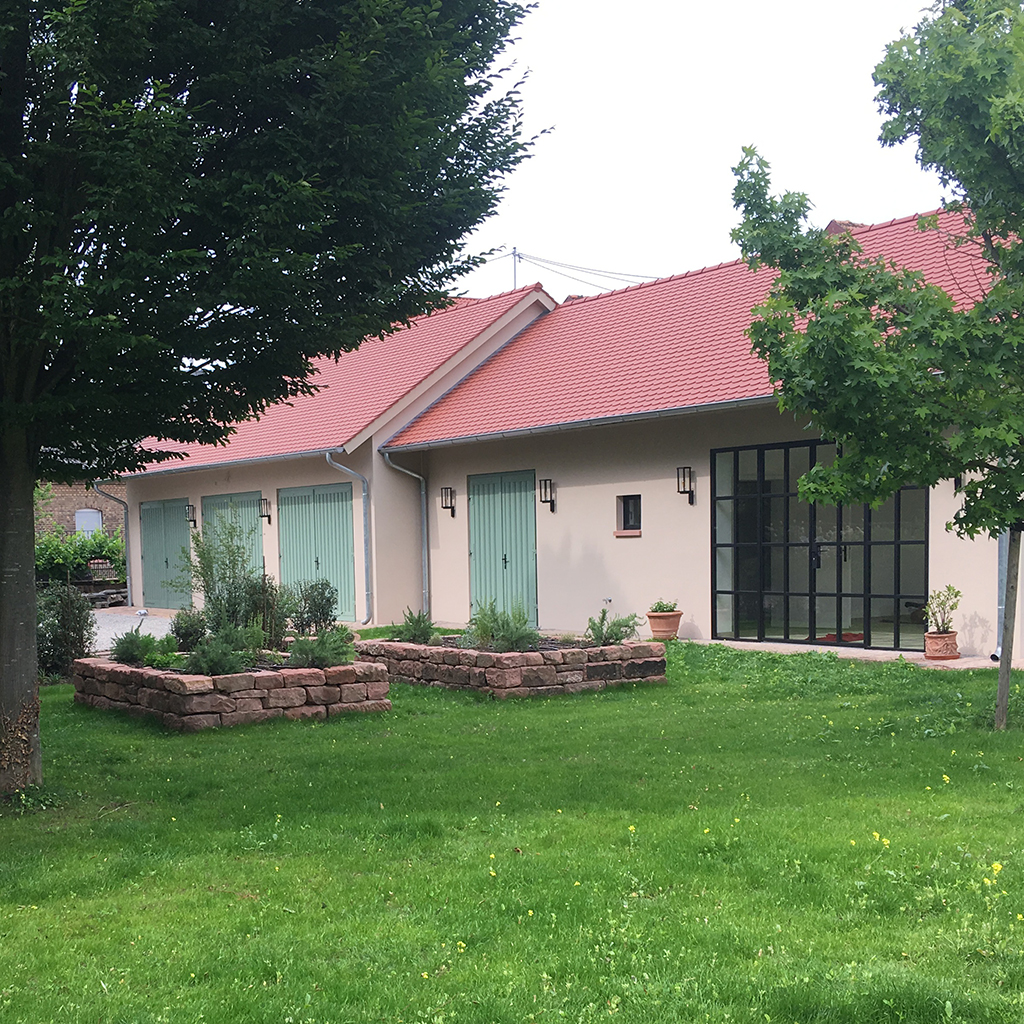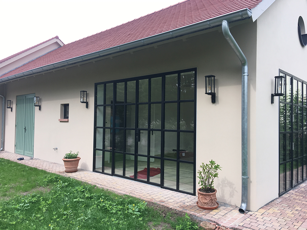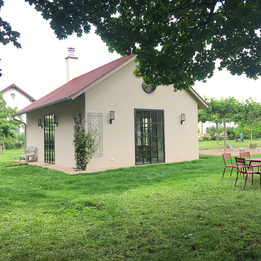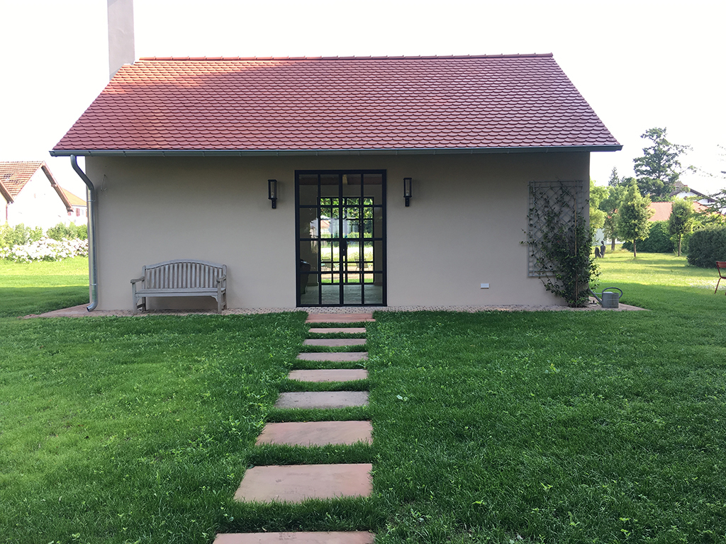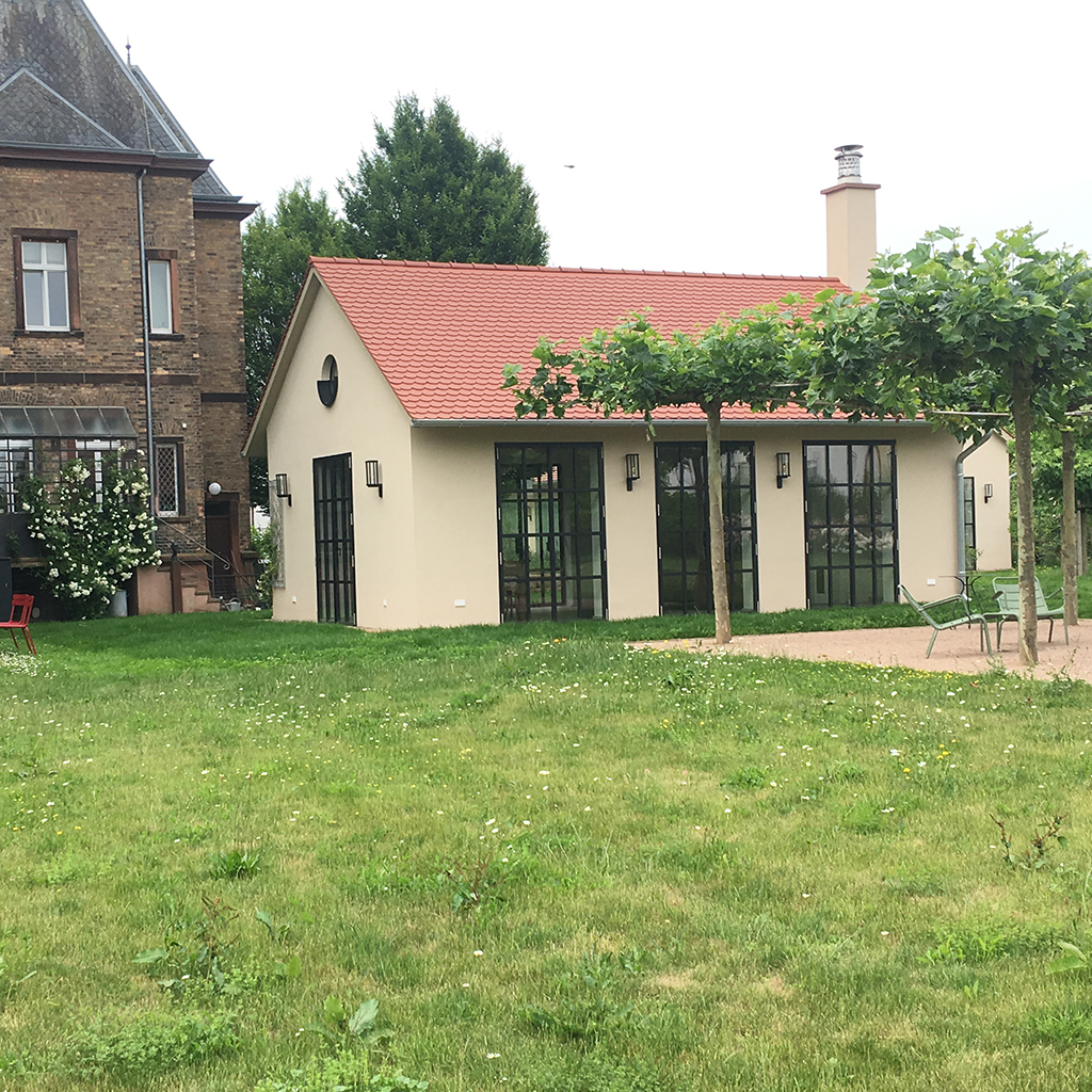Neubau von zwei Nebengebäuden – Garage und Gartenhaus – zur Fabrikantenvilla; gründerzeitlicher Mansarddachbau, Baujahr 1890